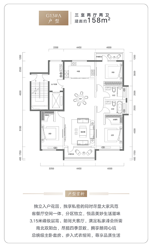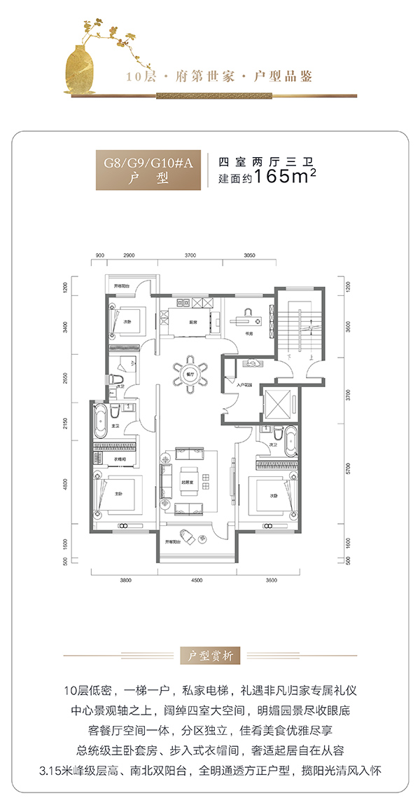 作為萬光城建25年的旗艦作品,萬光中華城傳承中國傳統(tǒng)文化,采用獨特的新中式建筑風(fēng)格,北高南低,東高西低堪輿環(huán)境布局,中軸對稱,四角平直,齊整劃一,無缺角,無凸角,展現(xiàn)天人合一的中式居住文化,堪為中國傳統(tǒng)風(fēng)水學(xué)當(dāng)代標(biāo)桿作品。項目將中國建筑精髓與現(xiàn)代審美需求結(jié)合,在建筑規(guī)劃中強調(diào)門第、街巷等理念,巧妙地將中國建筑的灰墻、磚瓦、屋檐的建筑手法融入社區(qū),打造符合現(xiàn)代審美情趣和居住需求的新人居建筑經(jīng)典。小區(qū)高層、小高層、多層、洋房、公館、別墅科學(xué)布置,南向開窗比例達(dá)到50%,容積率只有1.87,通風(fēng)、透光性能良好,全部一梯一戶設(shè)計讓居家私密性保護更加完善。為提高業(yè)主的居住舒適性,萬光中華城不惜犧牲可建層數(shù)換取每戶層高增加,5層公館的層高達(dá)到3.2米,高層和小高層的層高達(dá)到3.15米,萬光中華城精品的5層庭院公館,更是獨創(chuàng)獨棟10戶設(shè)計、南向單元入戶、南向4開間、22米超長采光面寬,地上地下雙精裝大堂,多重智能人臉識別系統(tǒng),戶戶有寬庭,家家有闊院,精雕細(xì)琢為煙臺奉獻(xiàn)一座中式家族大宅。